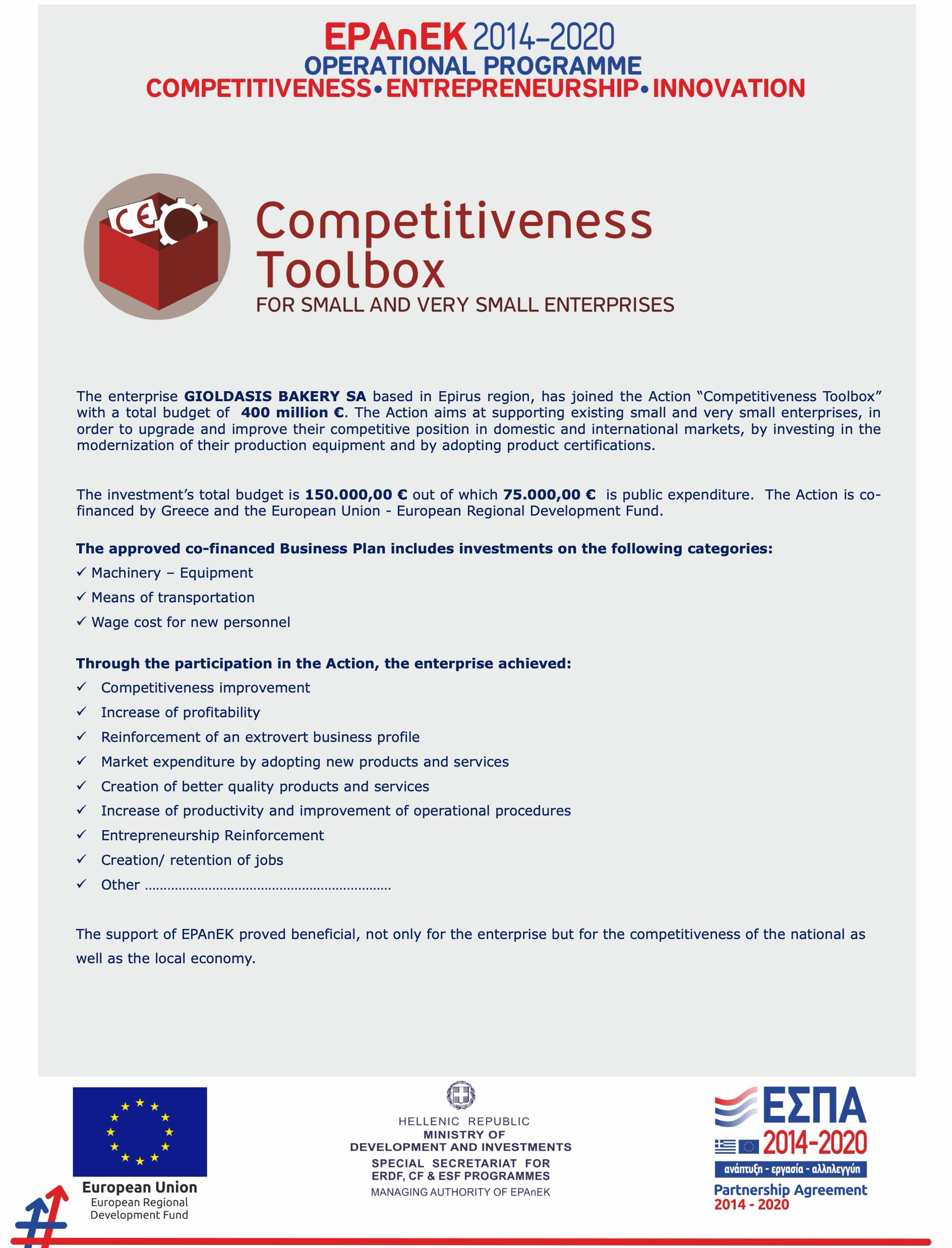 Today Gioldasis Bakeries has points of sale in Arta, Preveza, Filippiada & Thesprotiko. The branch network is developed on the basis of strategic planning and the aim of the company is to consolidate the bakery sector in northwestern Greece.